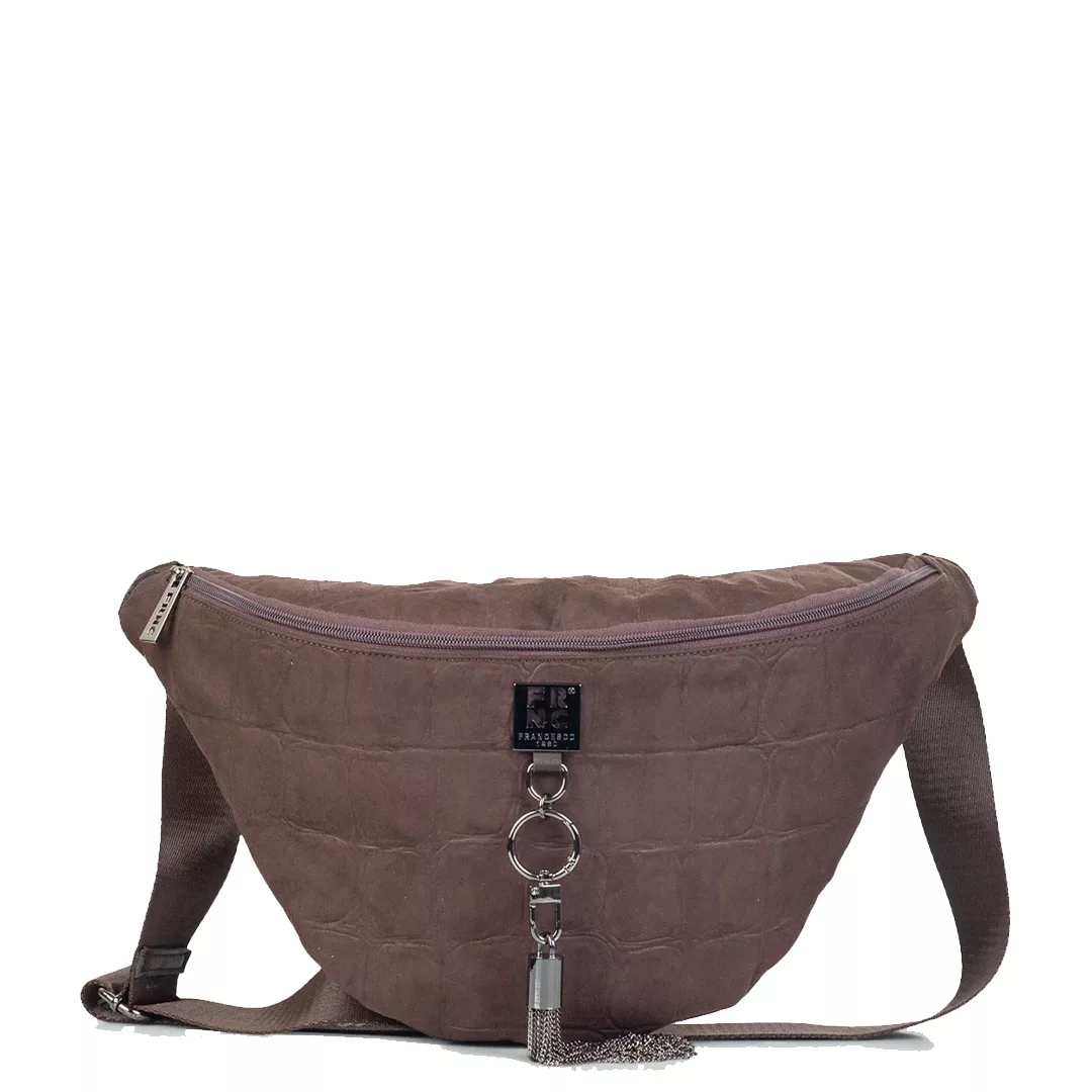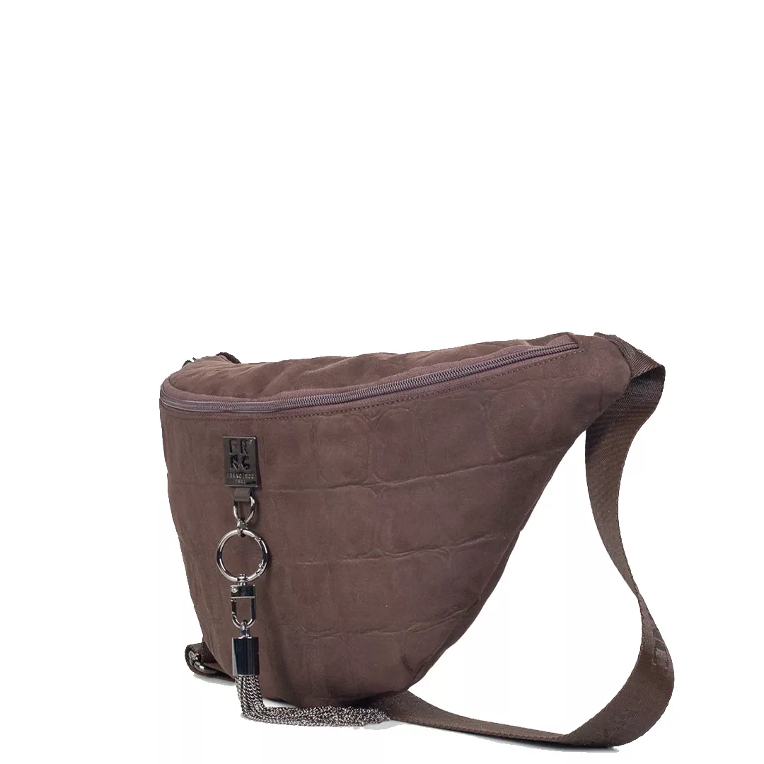 Η FRNC γυναικεία τσάντα μέσης σε καφέ καστόρι είναι το απόλυτο fashion statement για τη σύγχρονη γυναίκα. Ο minimal σχεδιασμός της, με ανάγλυφη croco υφή και μεταλλικές λεπτομέρειες, αποπνέει διακριτική πολυτέλεια και αστική κομψότητα.