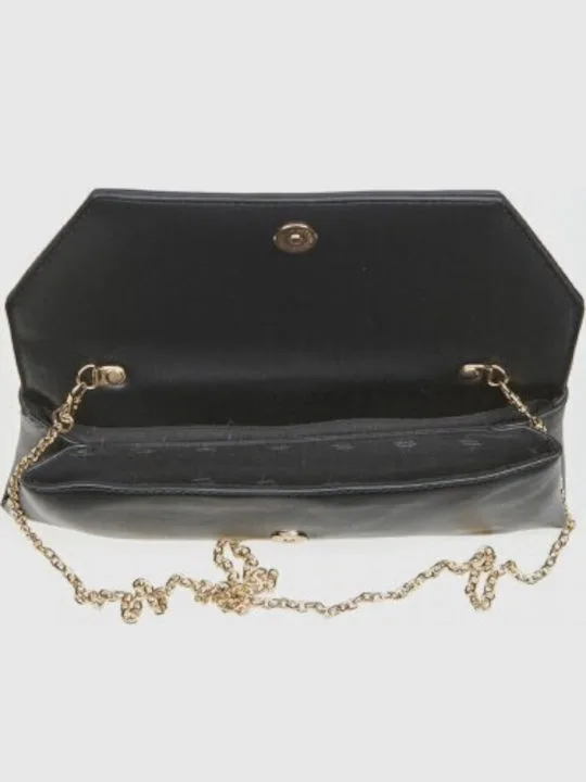 Διαθέτει μεταλλική αλυσίδα ώμου που επιτρέπει να φορεθεί τόσο ως clutch όσο και ως τσάντα ώμου, προσφέροντας ευελιξία ανάλογα με την περίσταση. Το μαύρο χρώμα την καθιστά εύκολη στους συνδυασμούς, ενώ το κομψό της μέγεθος είναι ιδανικό για τα απαραίτητα αντικείμενα.