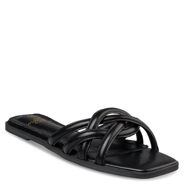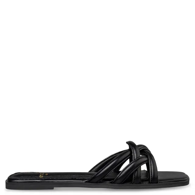 Minimal Mairiboo slides σε μαύρο χρώμα με πλεκτά λουράκια για άνετες και κομψές καλοκαιρινές εμφανίσεις.