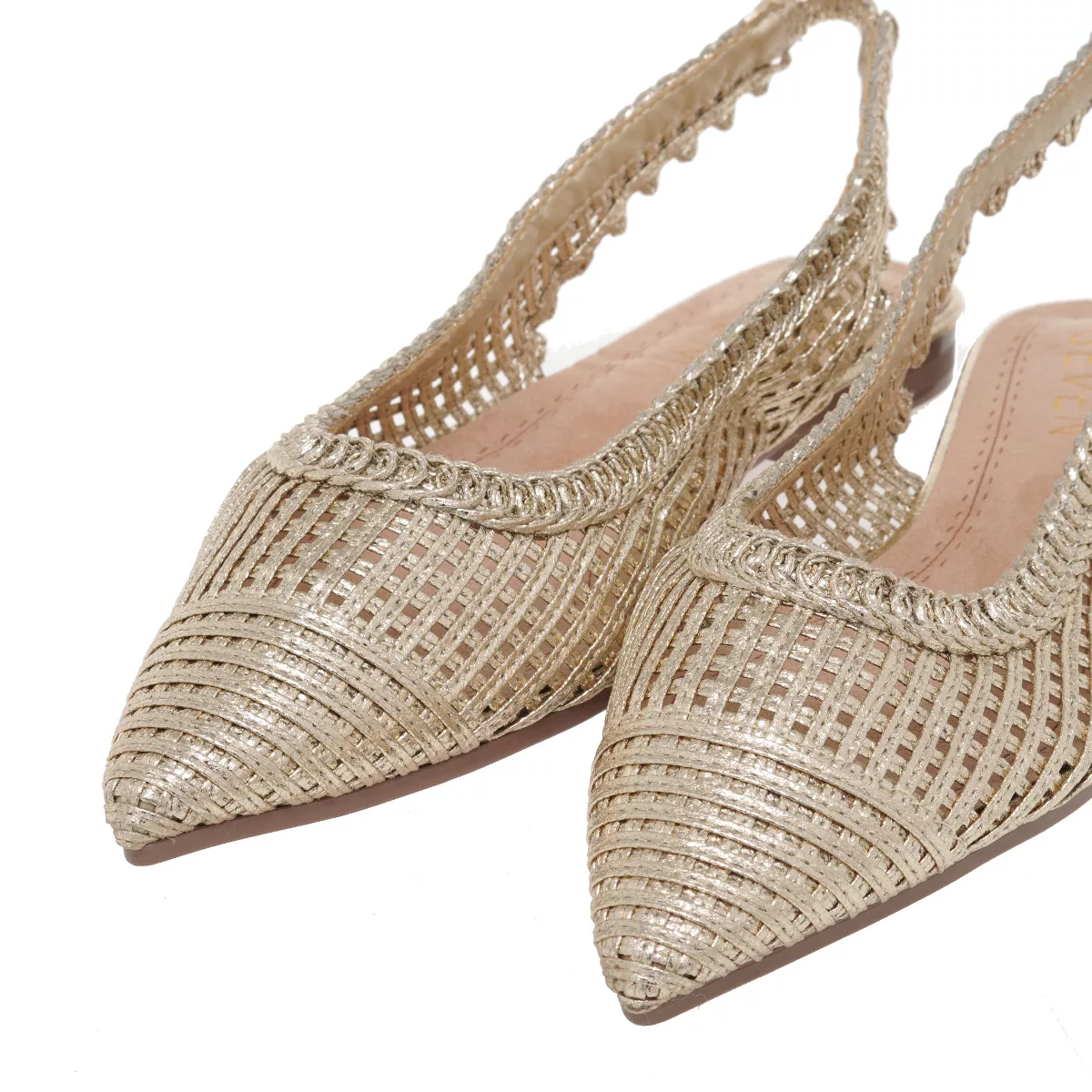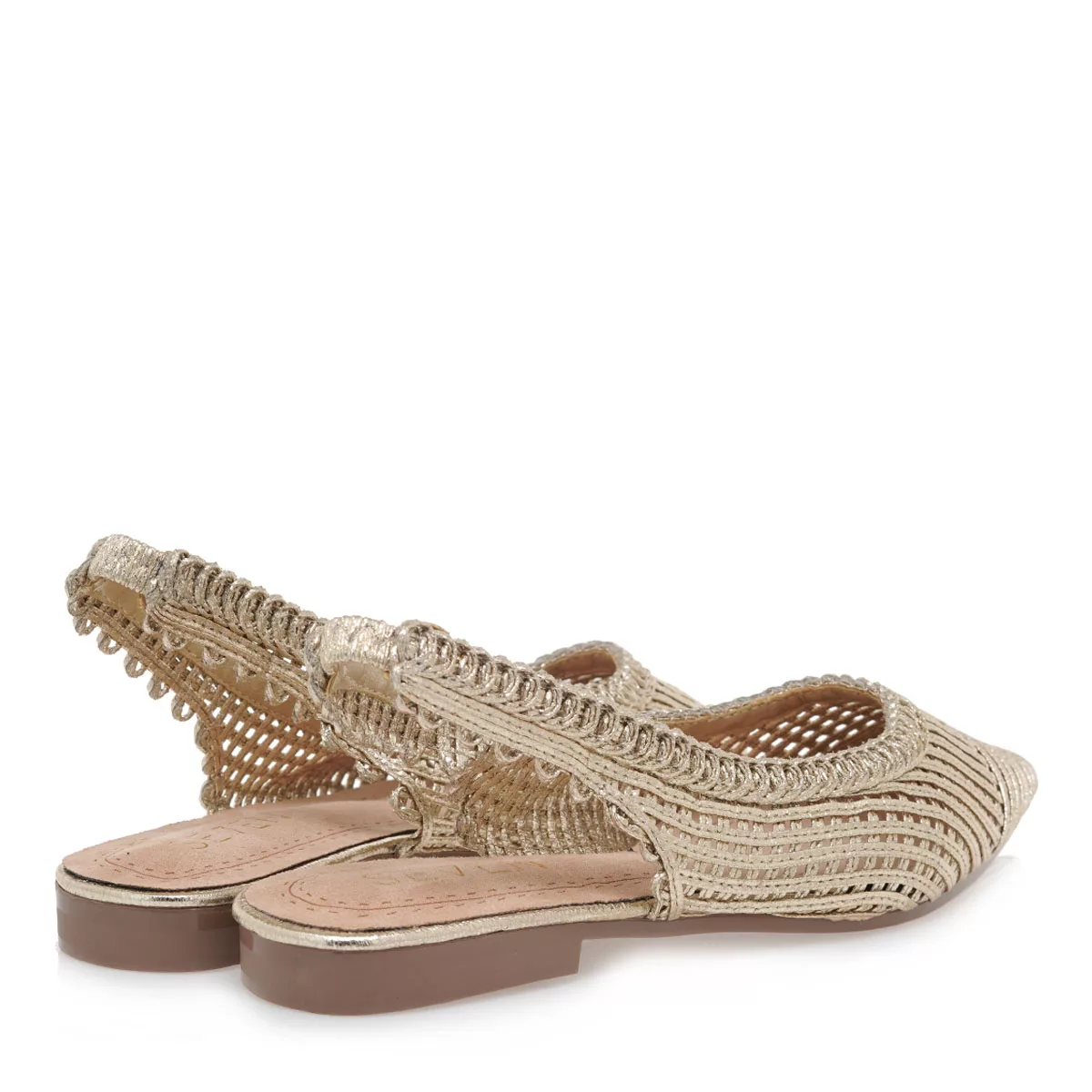 Γυναικεία flats Seven συνθετικά σε χρυσό χρώμα με πλεκτό σχέδιο. Ιδανικά για κάθε περίσταση.