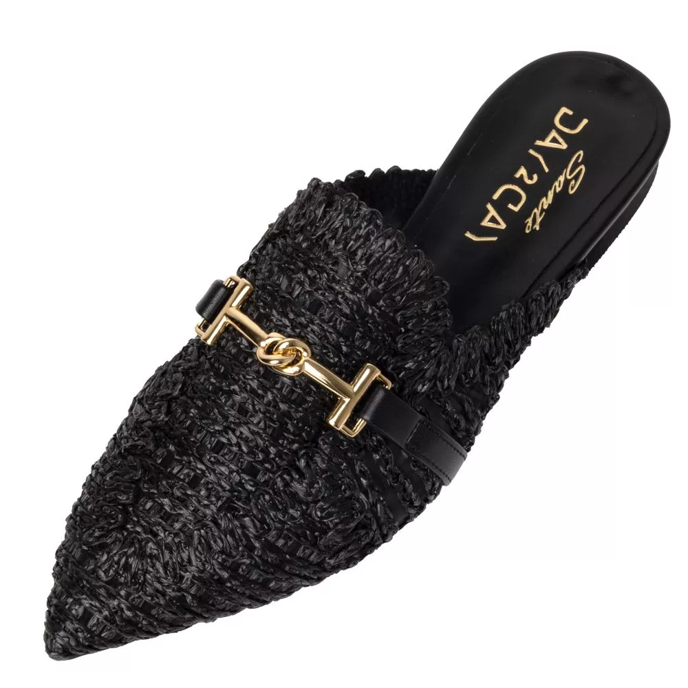 Γυναικεία mules της εταιρείας Sante Day2day μαύρα με χρυσή λεπτομέρεια και ιδιαίτερα μαλακό πάτο.