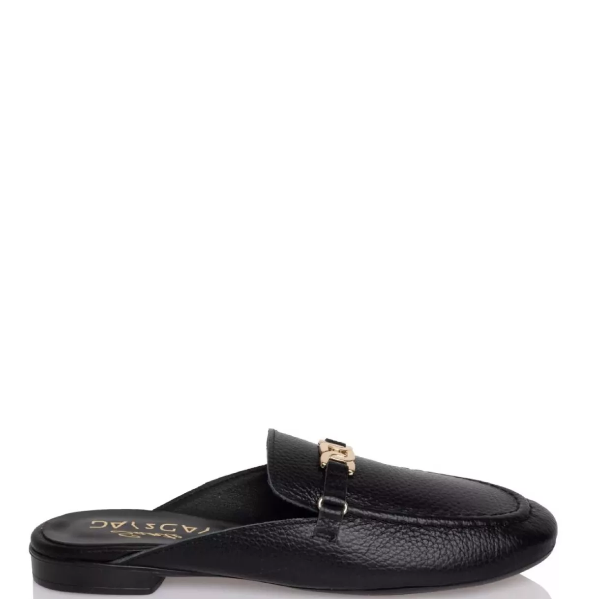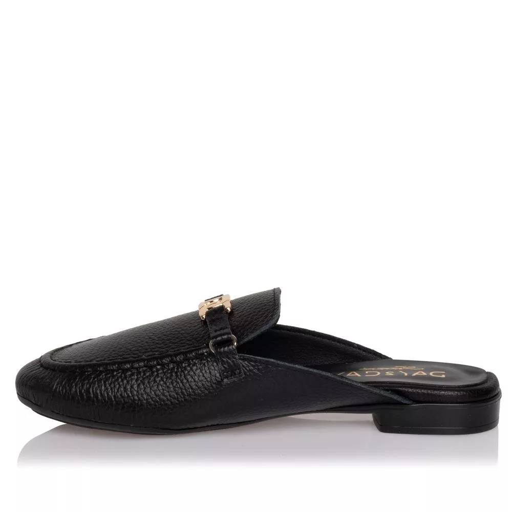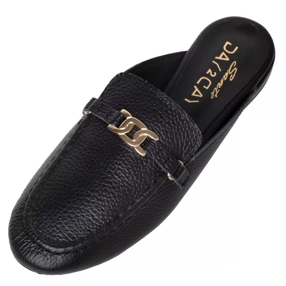 Γυναικεία mules μαύρα της εταιρείας Sante Day2day με χρυσή λεπτομέρεια και ιδιαίτερα μαλακό πάτο.