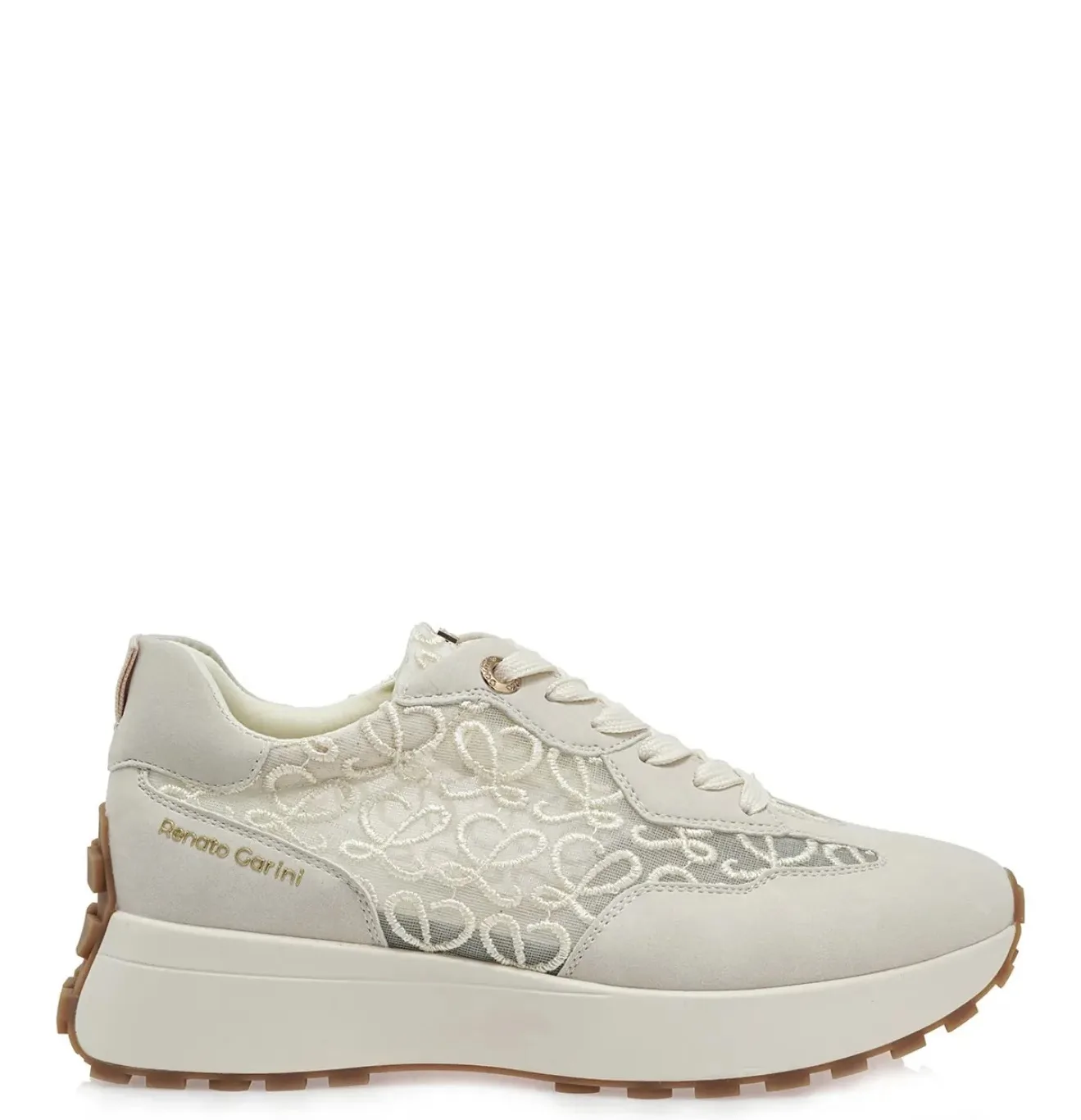 Το Renato Garini Εκρού Sneaker συνδυάζει κομψότητα και άνεση σε ένα μοναδικό σχέδιο. Ξεχωρίζει για το ιδιαίτερο κεντημένο μοτίβο στο πλάι, που προσθέτει ρομαντικό και θηλυκό χαρακτήρα, ενώ οι διακριτικές μεταλλικές λεπτομέρειες και το λογότυπο της εταιρείας ολοκληρώνουν το design με κομψότητα.