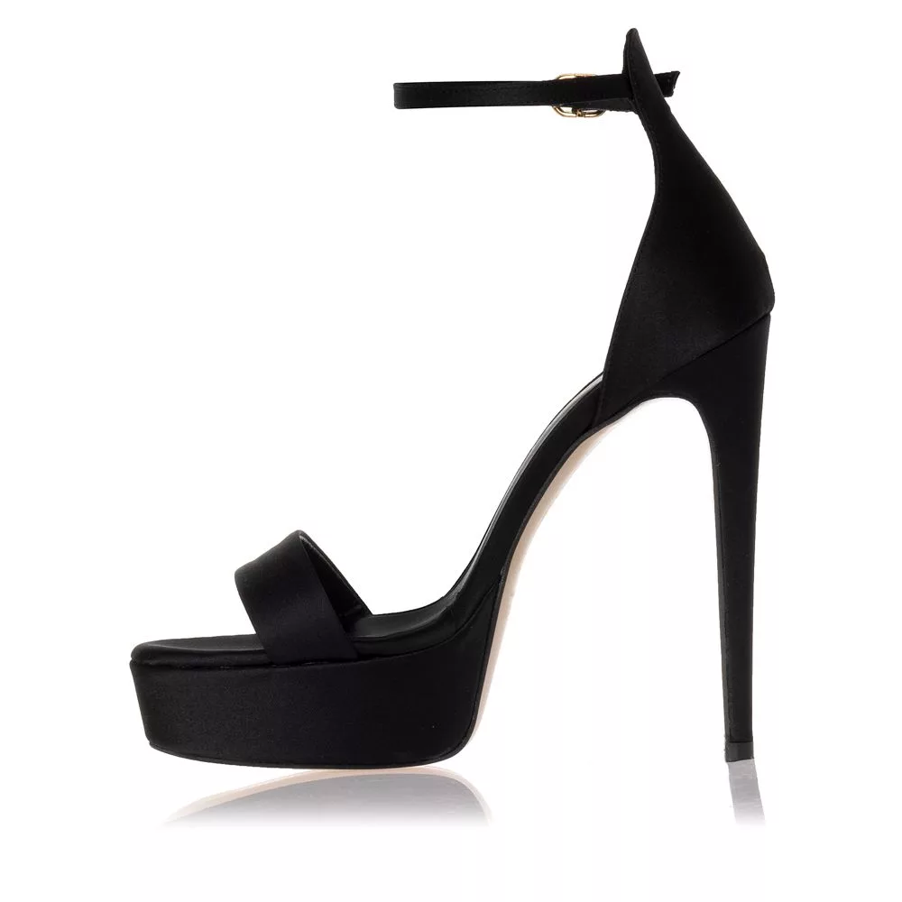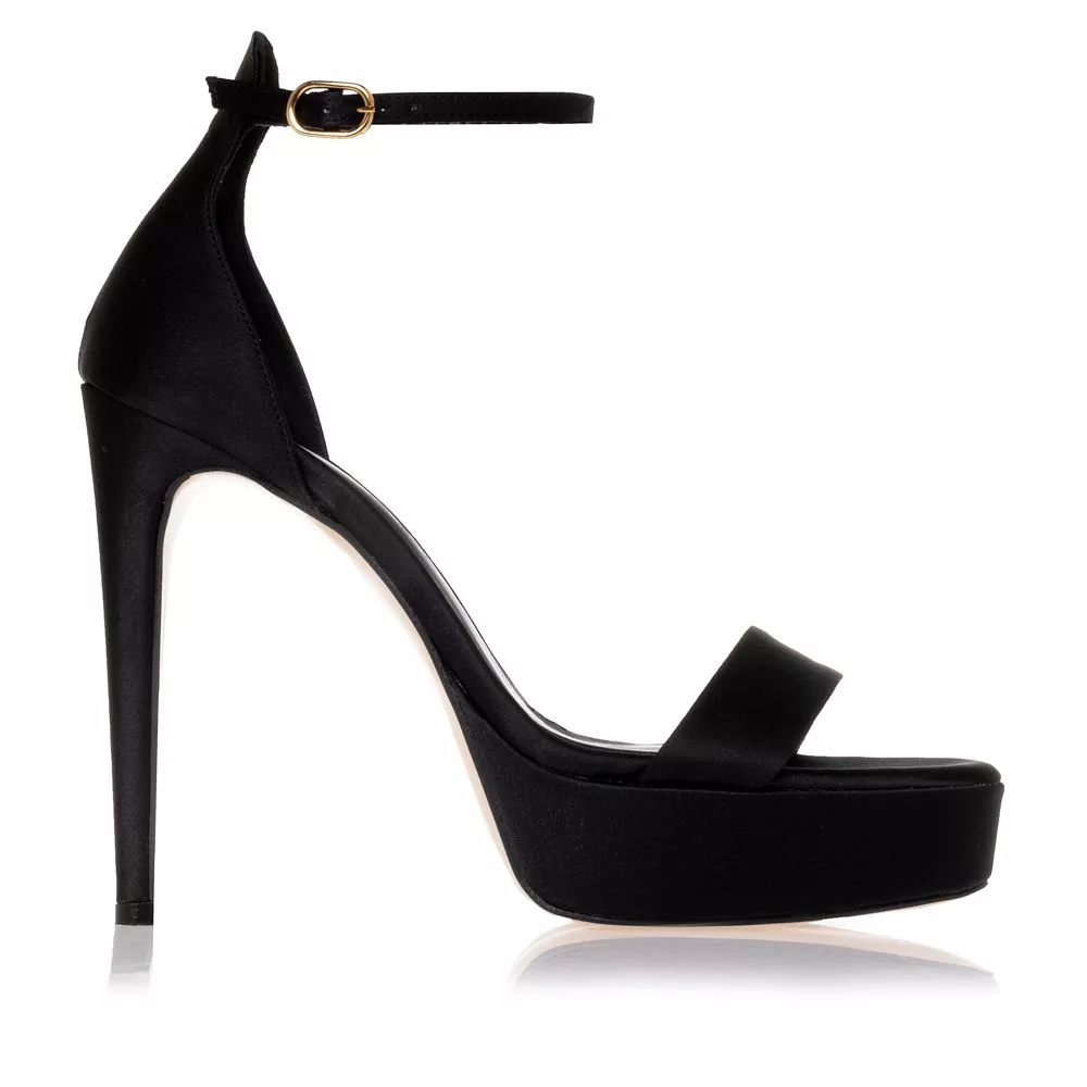 Sante γυναικείο πέδιλο μαύρο, κατασκευασμένο από δέρμα και σατέν.