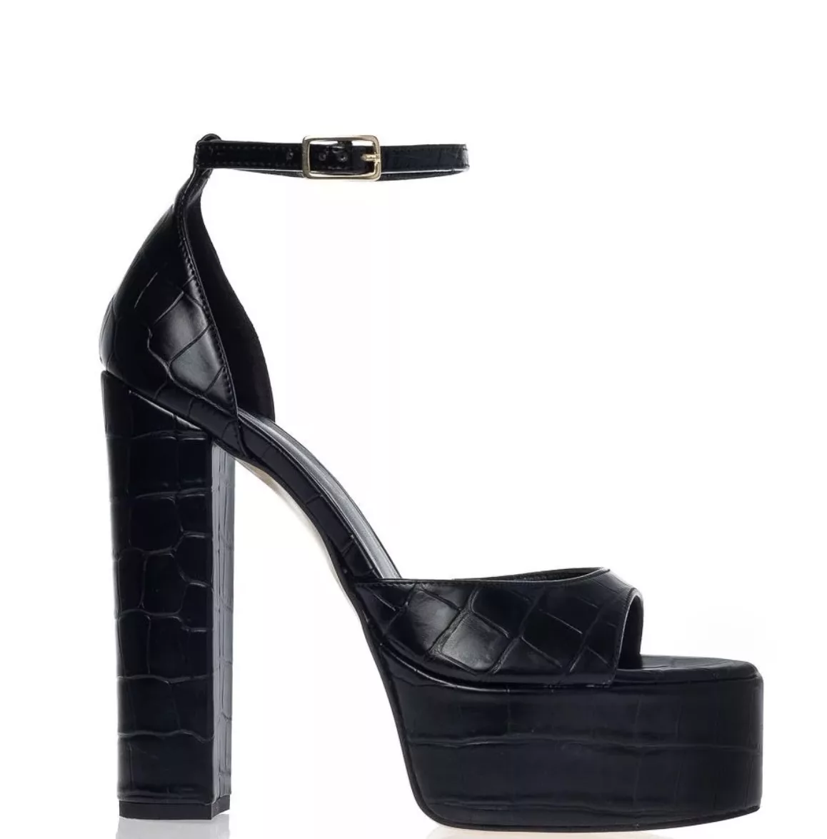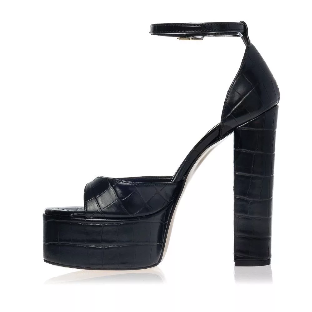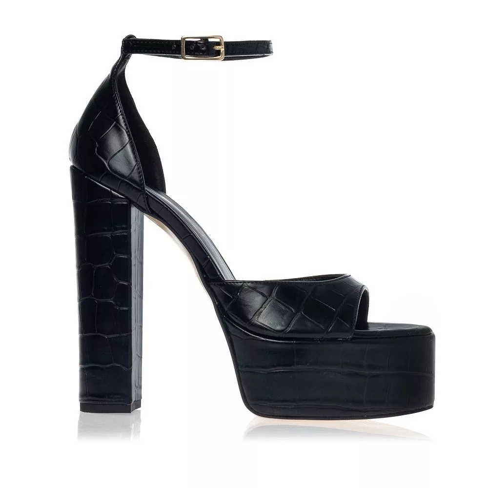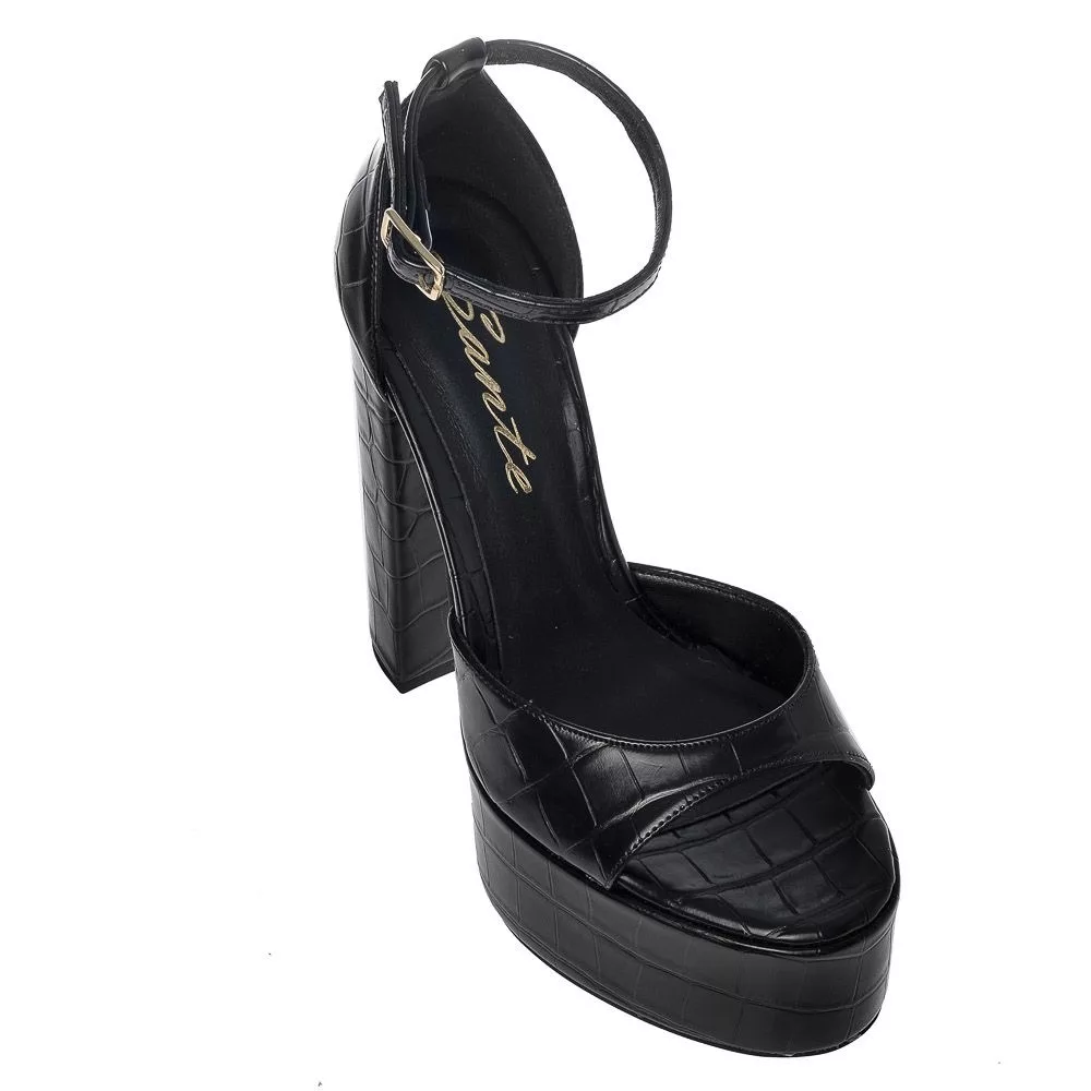 Sante γυναικεία μαύρα πέδιλα με χοντρό τακούνι. Είναι κατασκευασμένα από οικολογικό δέρμα.