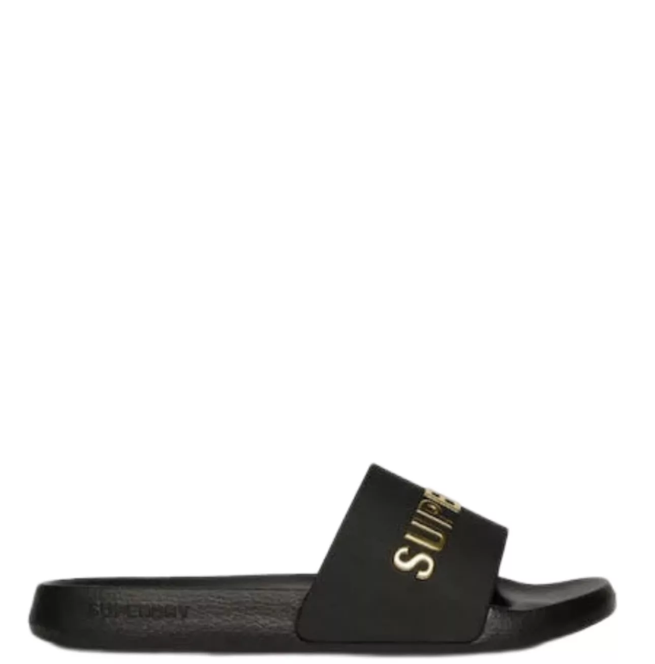 Παντόφλες Superdry γυναικείες με ανάγλυφο λογότυπο χρυσό. Λουράκι με επένδυση. Ανατομικός πάτος.