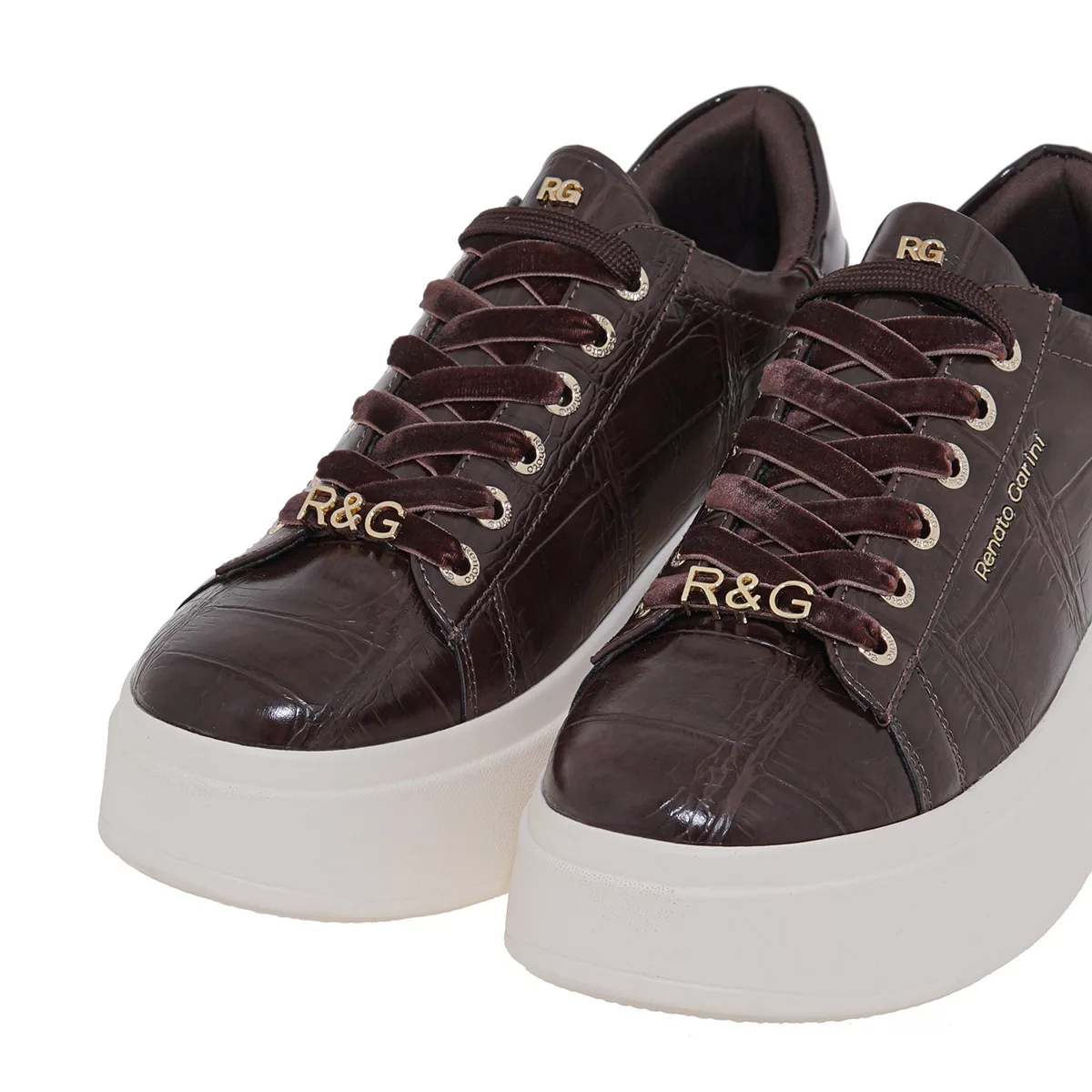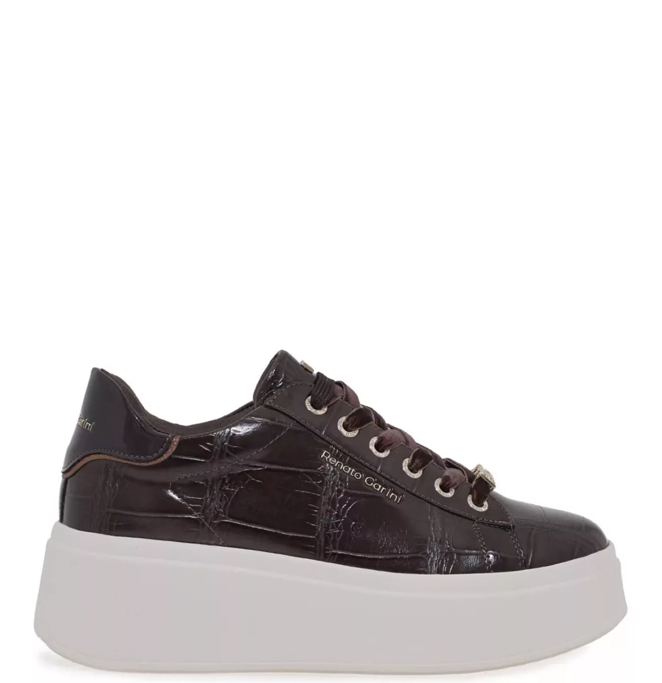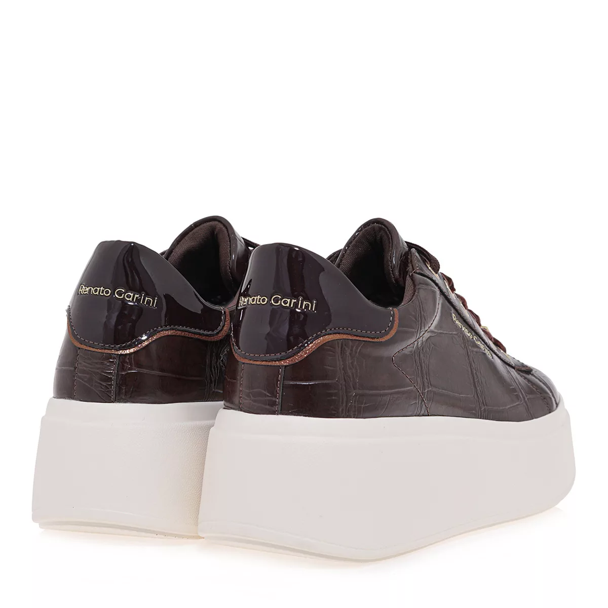 Ανακάλυψε τα γυναικεία sneakers Renato Garini σε καφέ κροκό λουστρίνι με chunky σόλα. Μοντέρνα, άνετα και ιδανικά για κάθε casual εμφάνιση