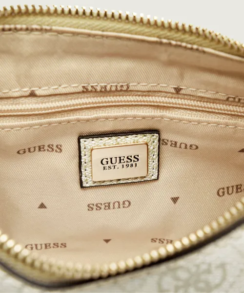 Τα χρυσά μεταλλικά στοιχεία αναδεικνύουν τον πολυτελή χαρακτήρα της τσάντας, ενώ το πρακτικό κλείσιμο με φερμουάρ εξασφαλίζει ασφάλεια και ευκολία στη χρήση. Στο εσωτερικό διαθέτει τσέπη με φερμουάρ για καλύτερη οργάνωση, καθώς και επένδυση με το χαρακτηριστικό λογότυπο της Guess.
